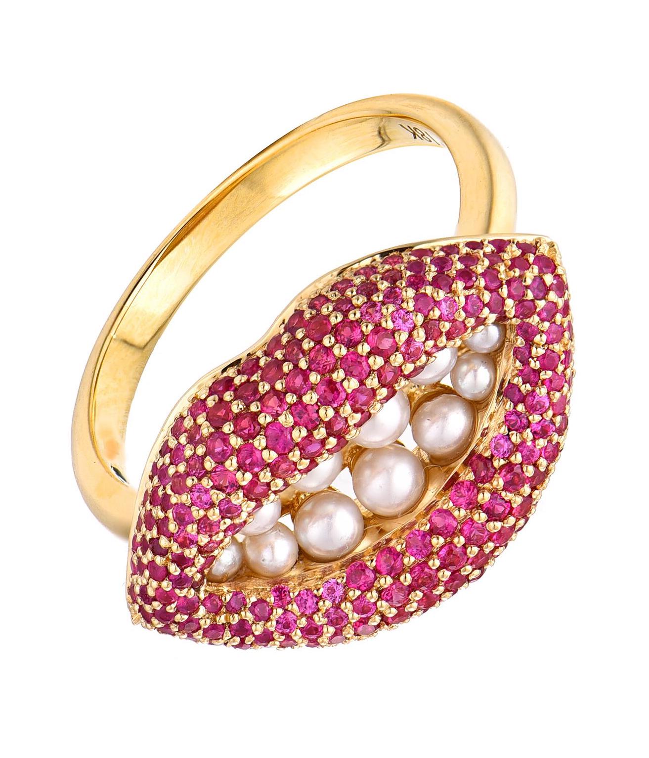 Ruby and Pearl Lip Ring