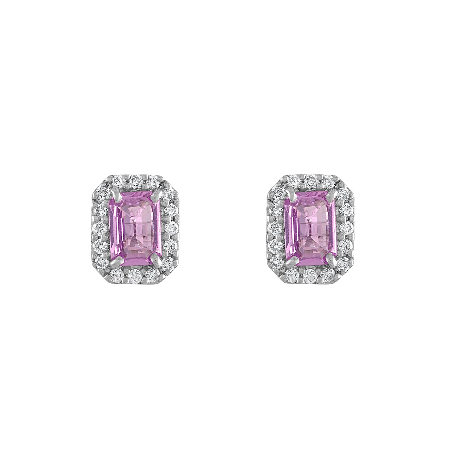 Emerald Cut Pink Sapphire Studs