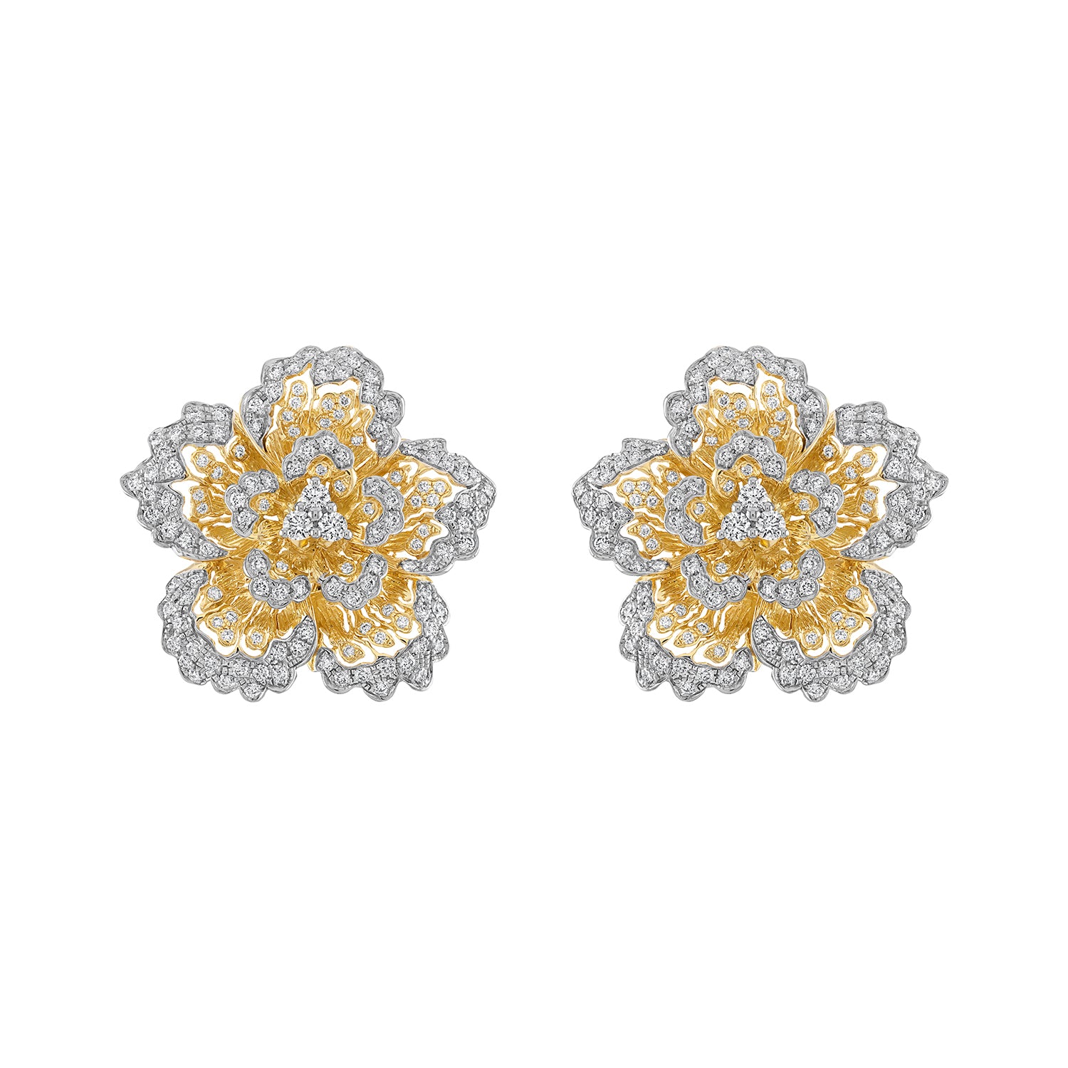 Gold and Diamond Flower Earrings