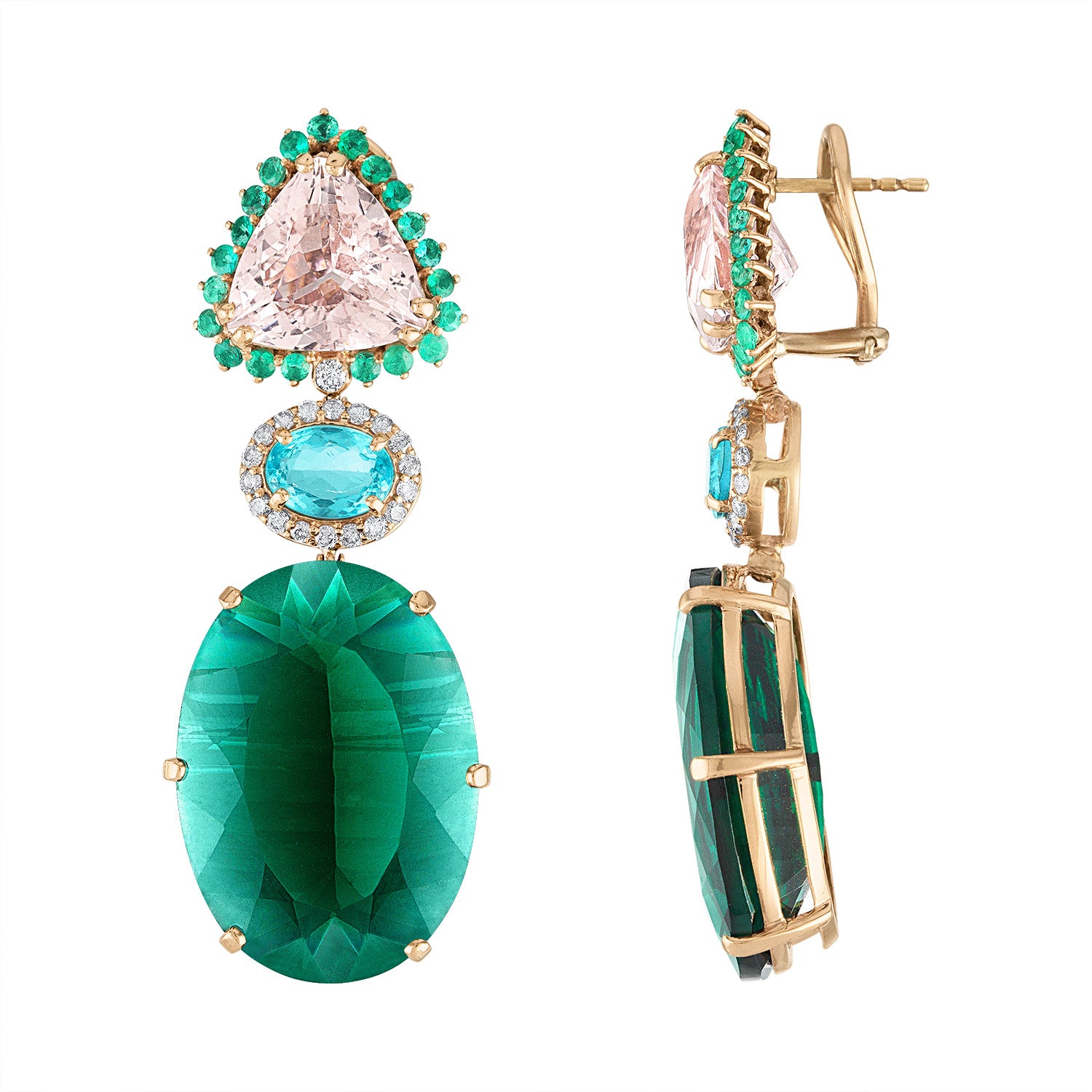 Diamond Clusters with Removable Emeralds Earrings