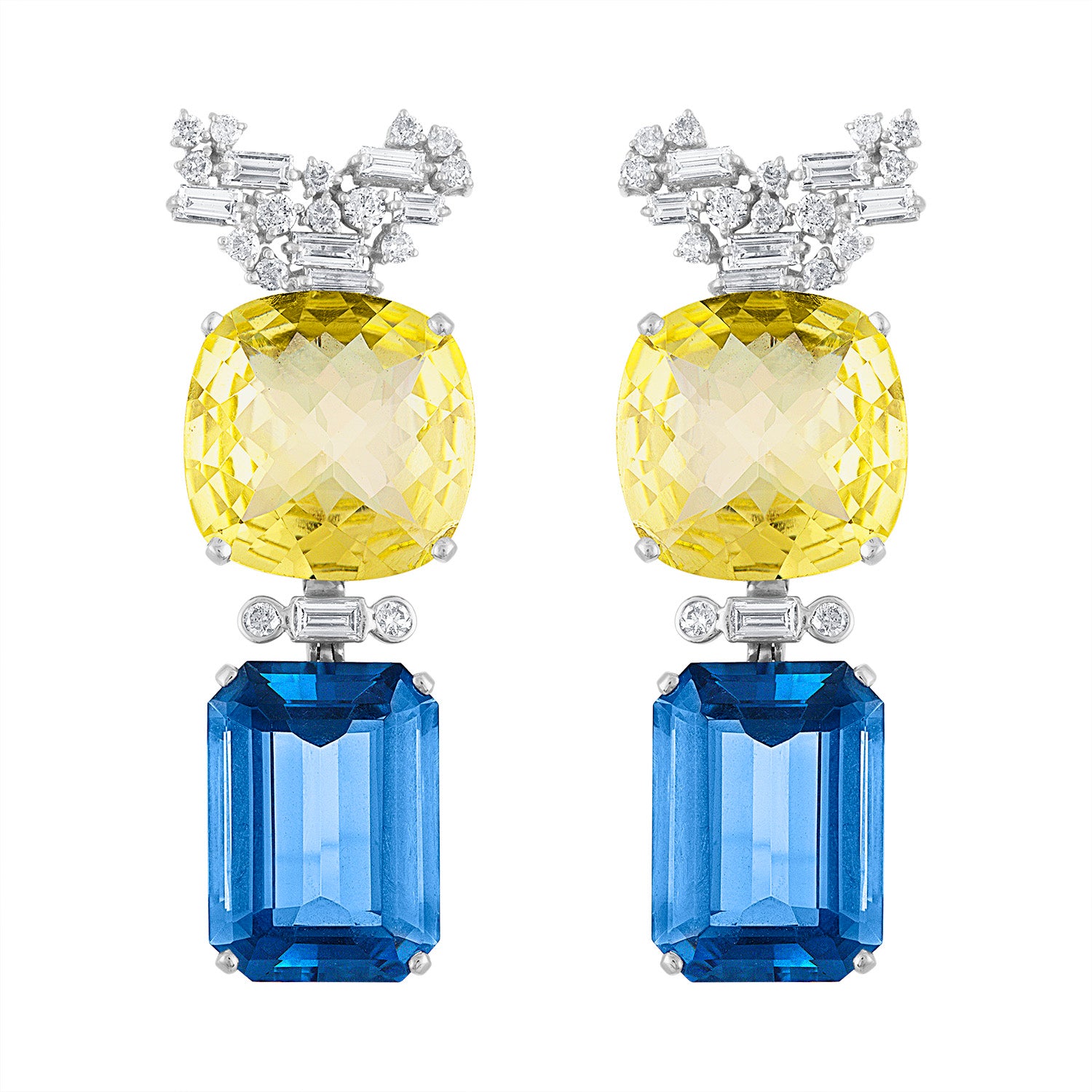 Diamond, Fluorite and Citrine Earrings