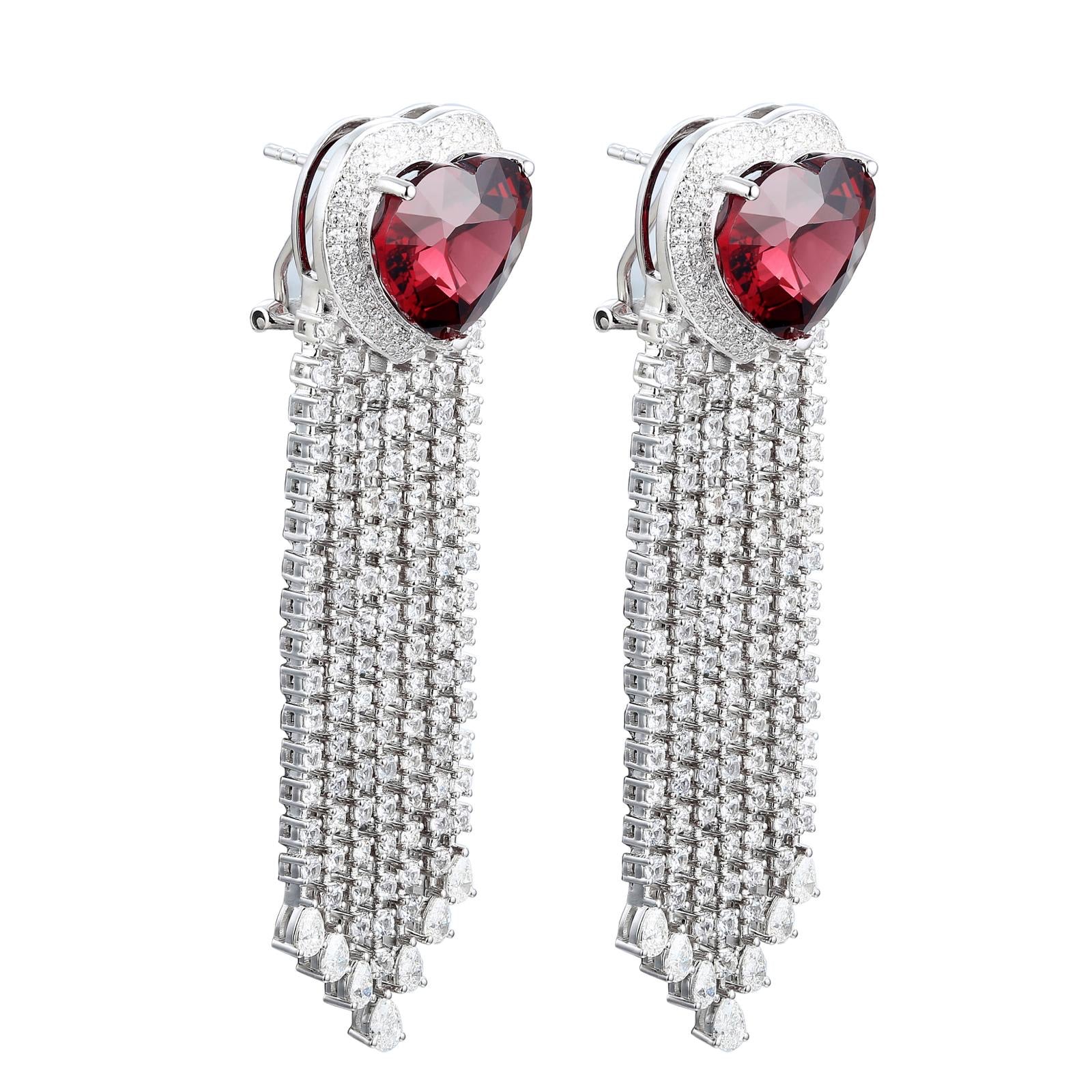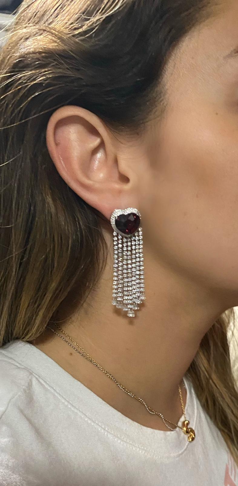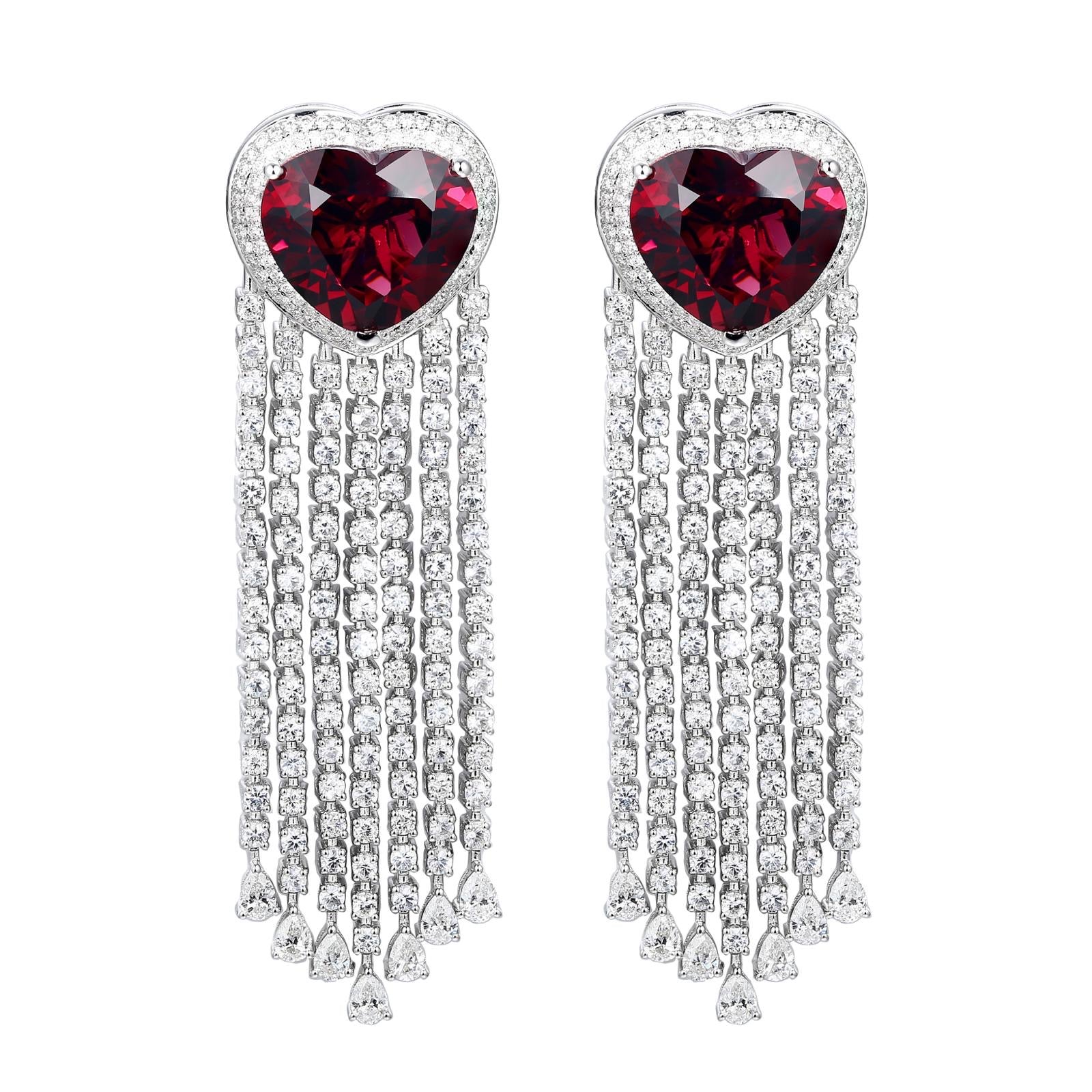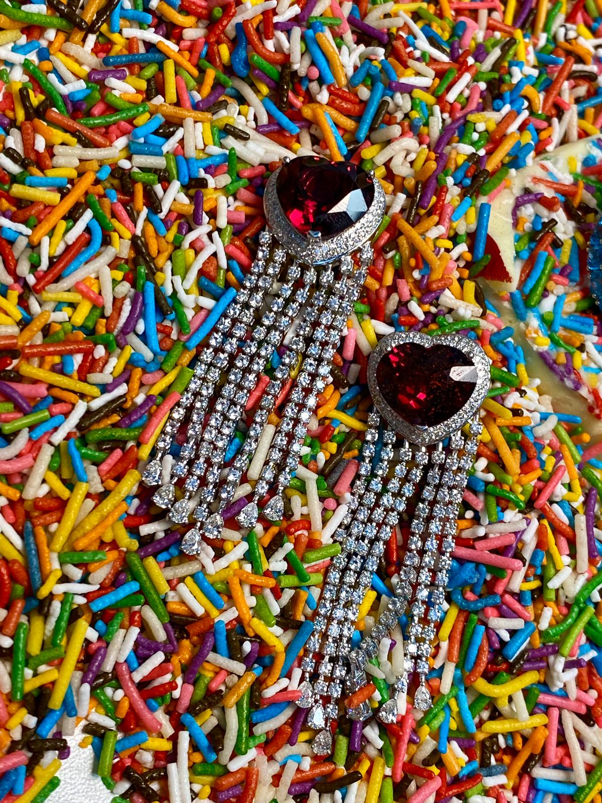 Rubellite Hearts with Diamond Fringe Earrings