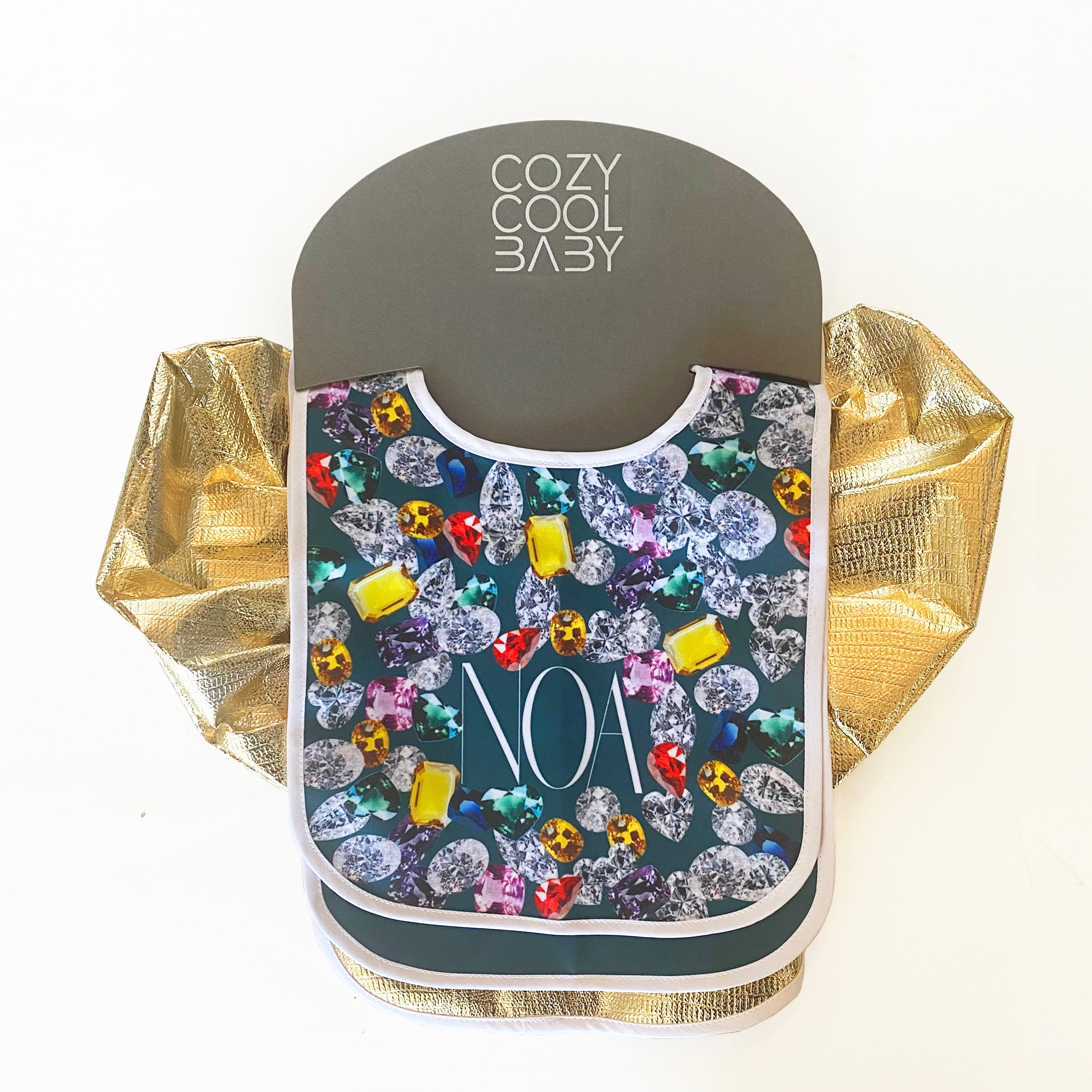 Set of 3 (2 personalized), cool plastified bibs.