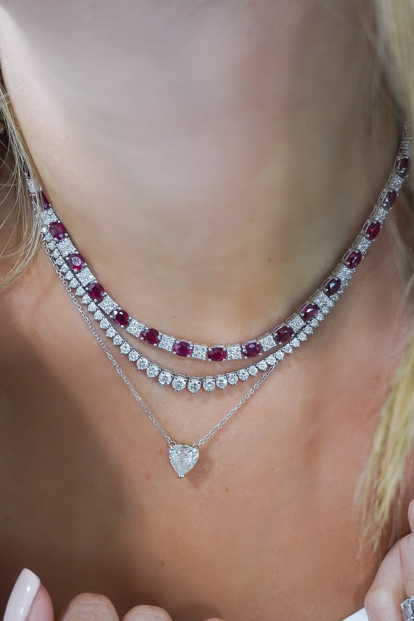 Ruby Hearts/Diamond Necklace