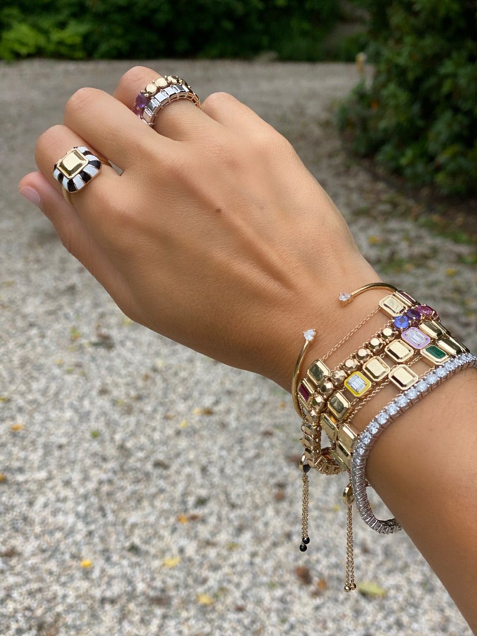 White/Yellow Emerald Cut Goldstone™ Eternity Band