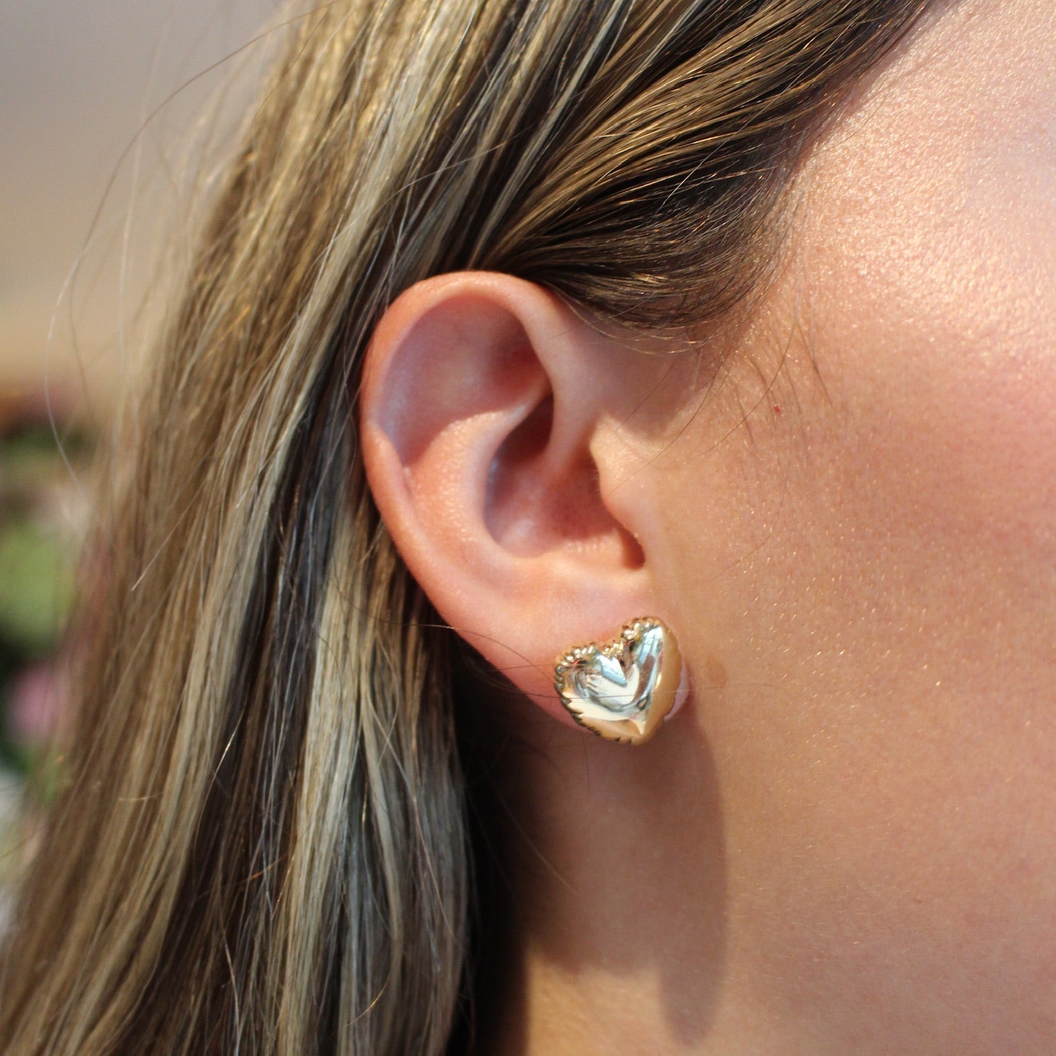 Gold Balloon Heart Studs