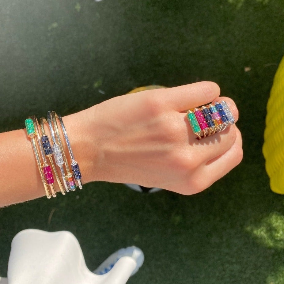The color baguette portion of the cuff can be positioned in three different ways, with the roll on the center, on the left or on the right, so you can roll with it any way and create the perfect LA stack!